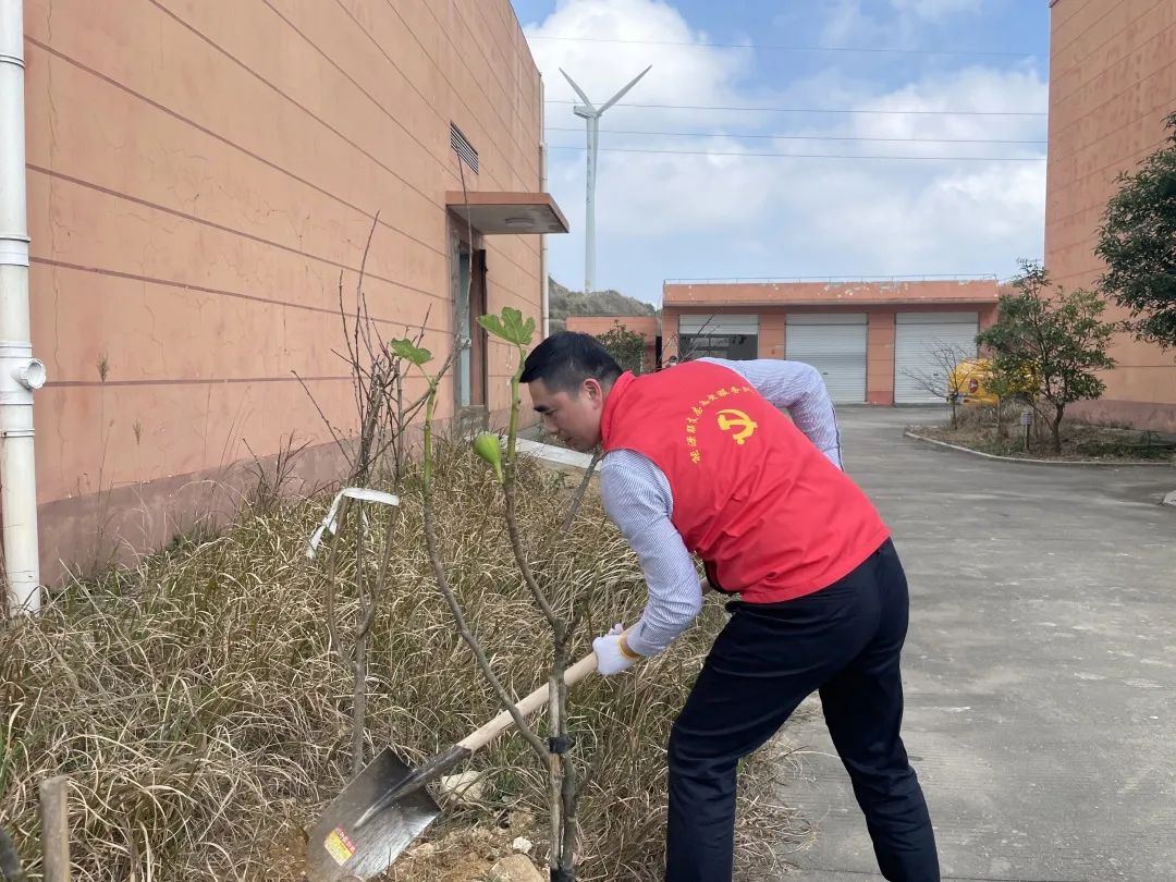 線下,能源公司的黨工團志愿者們帶上樹苗、扛起鋤頭,奔赴平陽西灣及蒼南霞關(guān)兩個風(fēng)電場,在暖陽下,挖坑、栽樹、壓土、澆水...... 各個環(huán)節(jié)銜接有序,配合默契,認(rèn)真地完成每一道工序,一棵棵新苗就穩(wěn)穩(wěn)地在土里扎下了根,為風(fēng)電場的春天又增添了一抹新綠。